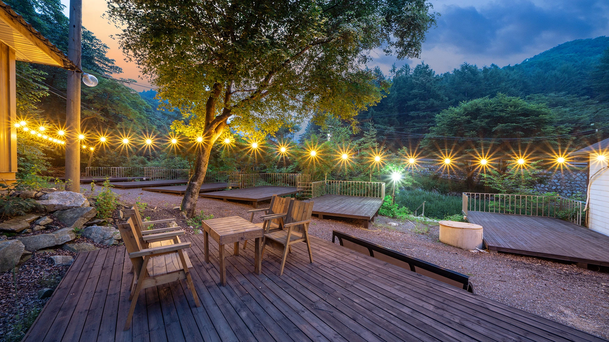 - 집기품목 : 금연, 개별바비큐, 와이파이, TV, 에어컨, 냉장고, 취사시설/도구, 전기밥솥, 전자레인지, 인덕션, 글램핑, 욕실용품