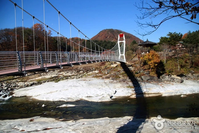 용이 머물다 승천했다는 천년전설을 고이 간직한 용담계곡은 대부분 암반위로 흐르는 물이 깨끗하고 암석으로 둘러쌓여 있을 뿐만 아니라 도처에 기묘한 폭포나 소, 그리고 암석들이 다양한 계곡을 형성하고 있다. 계곡 가운데는 가메소라 부르는 용소및 백운담 (곡운영당), 개똥소이 등이 있다. 자료출처 : 대한민국 구석구석(http://korean.visitkorea.or.kr) 펜션에서 13.31km, 차량으로 약 19분